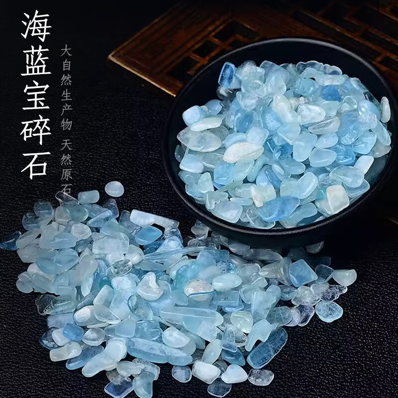 天然海藍宝水晶砕石消磁浄化ブルー水晶砕石粒水晶原石置物