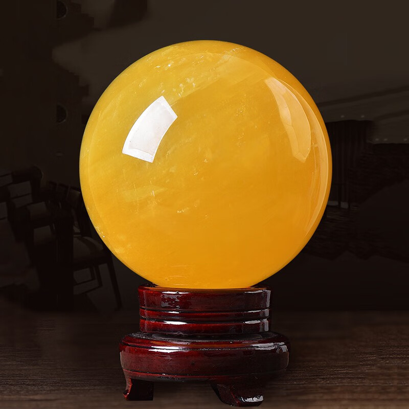 天然の黄水晶のボールの置物の方解石のボールの原石の水晶のボールの置物は氷洲の石の金の事務を磨きます。