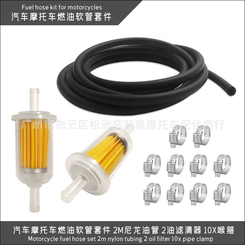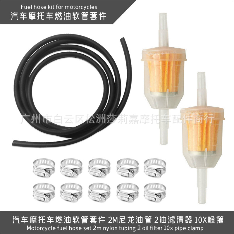 2mナイロンオイルパイプ2xオイルフィルター10xホースクリップ自動車オートバイスクーター燃料ホースセット