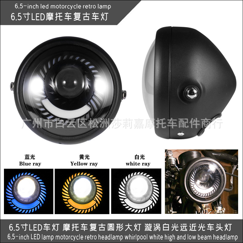 6.5インチLEDライトバイク復古改造円形ヘッドライト渦白色光遠近光ヘッドライト