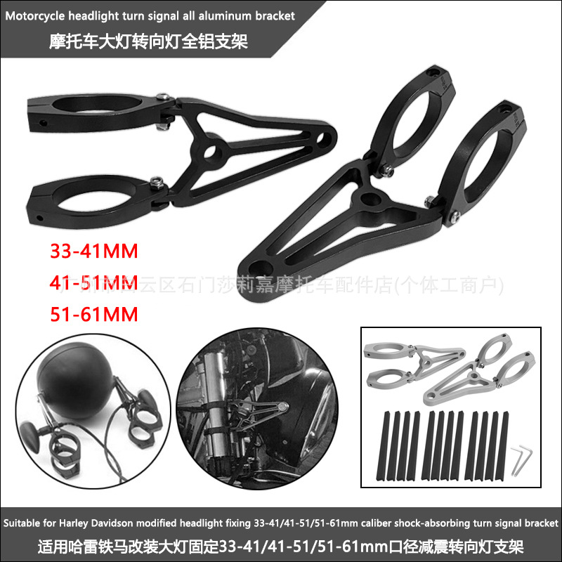 オートバイ改造ヘッドライトブラケット全黒33-41-51-61mmオートバイヘッドライト治具取付調整可能