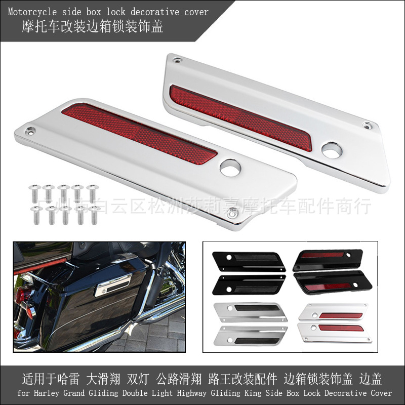 サイドボックス装飾蓋キット蓋ロックカバー反射カバーはハーレー大滑空tour ing 94-17に適しています。