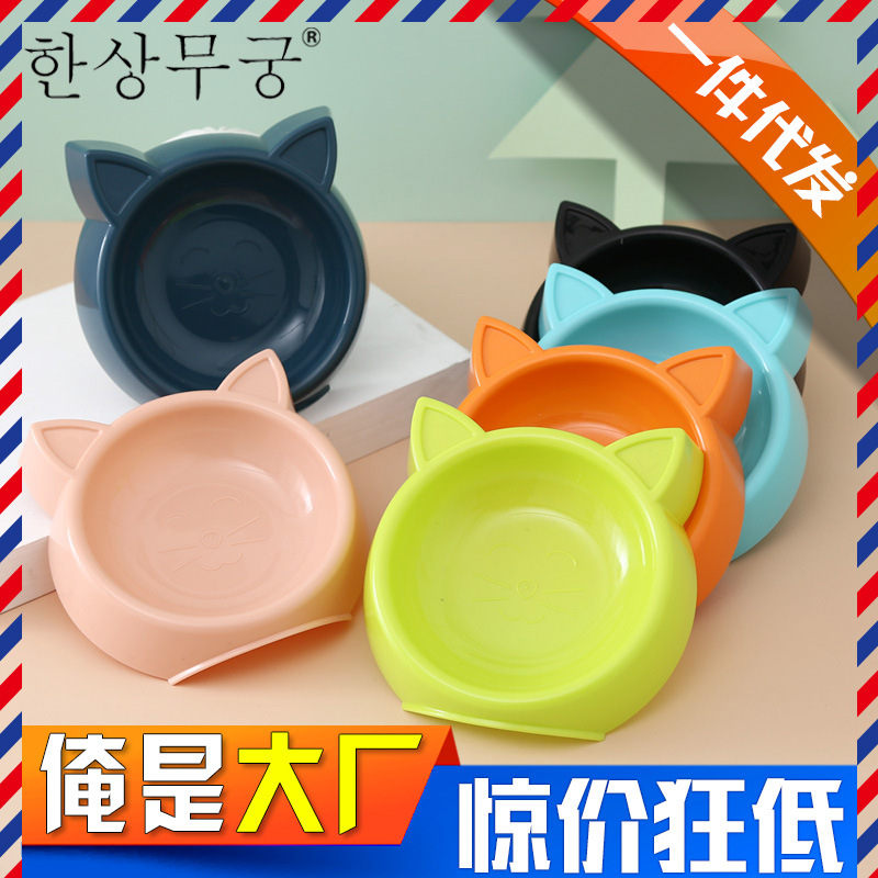 工場卸売猫の顔ボウル転倒防止プラスチック滑り止めマット猫ボウル犬猫漫画ペットボウルペット用品