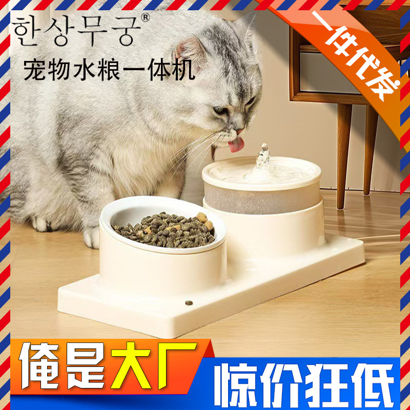 猫の水とフード一体型自動水飲みボウル、ペットフィーダー、首の保護、転倒防止、猫ボウル、犬ボウル、ペット用品工場