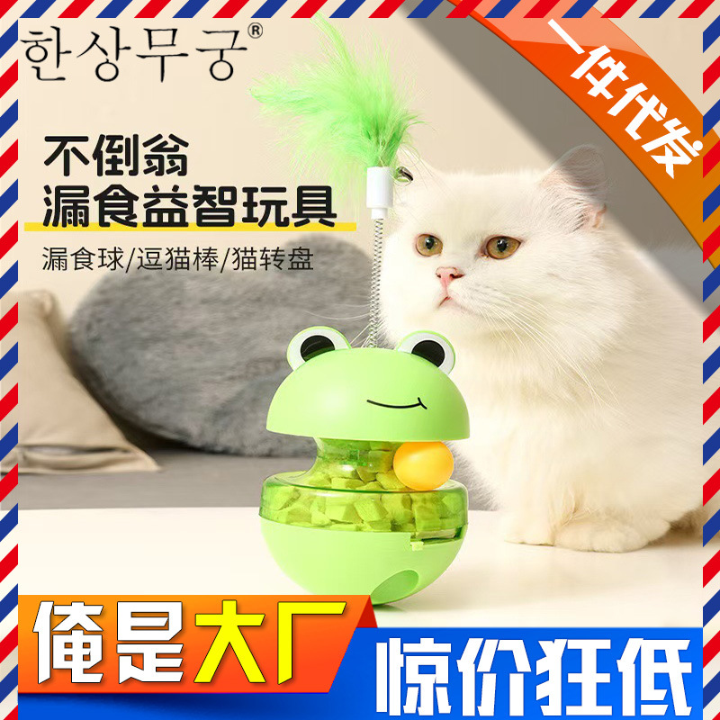 カエルタンブラー、退屈解消、猫用スティック、猫用ターンテーブルボール、調節可能な教育用漏れ防止ボール、猫用おもちゃ、ドロップシッピング