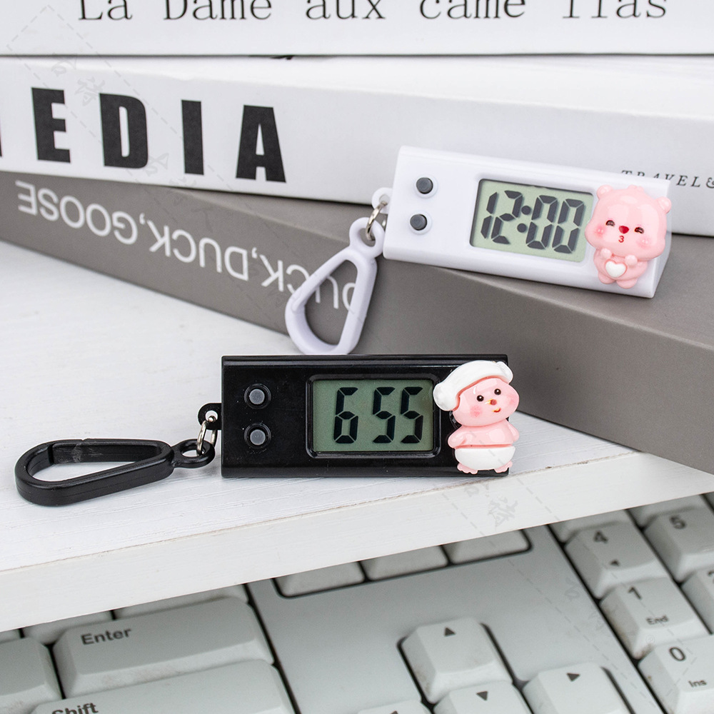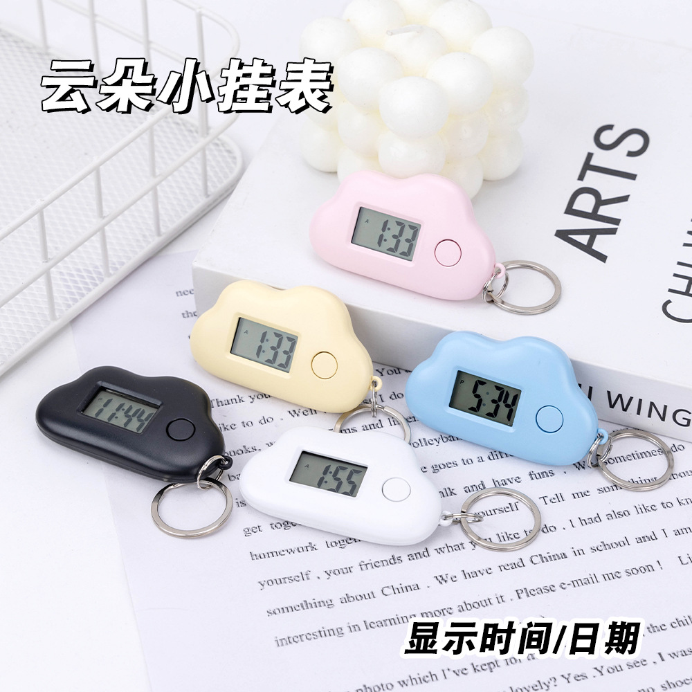 夜光雲のキーホルダー携帯マカロン色の大学院受験の仕事をする学生は時間の電子時計を表示します。