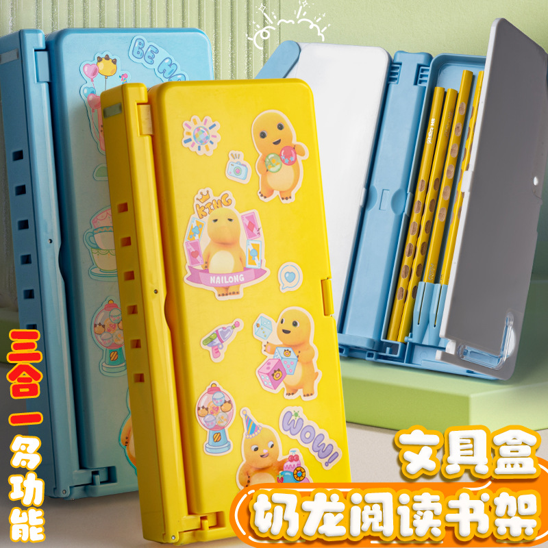 麦と正規版乳龍多機能読書本棚筆箱大容量収納携帯鉛筆ケースホワイトボード付き