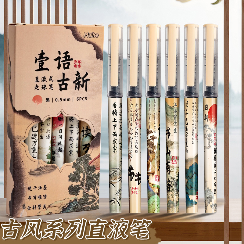 麦と壱語古新直液式中性ペン黒水筆速乾針管式学生水筆サインペン