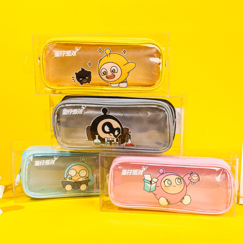 麦と卵の子のパーティーの二重の骨を引くペンの袋の透明な可視の大容量は学生の文房具の袋の鉛筆の箱を収納します。
