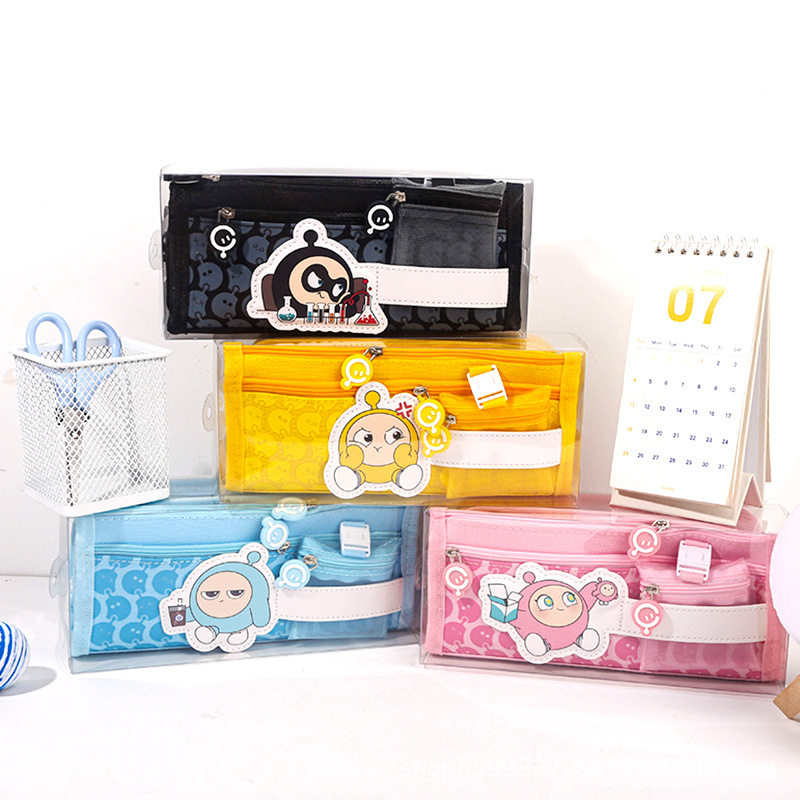 麦と卵の子のパーティードラの筆の袋のかわいい漫画の大容量の多層の小銭入れの鉛筆の袋の学生の文房具の袋