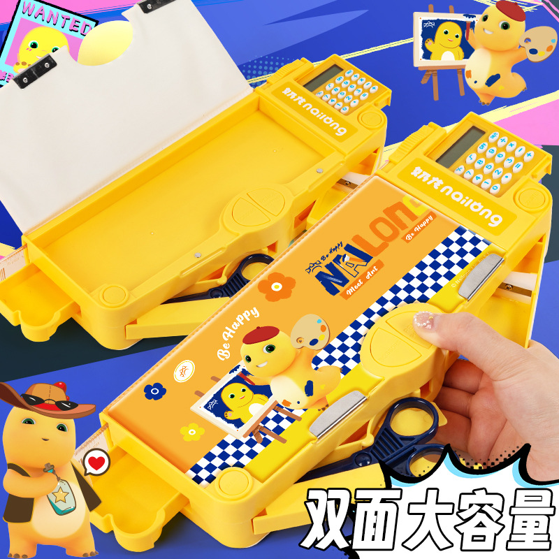 麦と小乳龍多機能ケース両面使用コンピュータゴムはさみ削りペン収納カレンダー機能