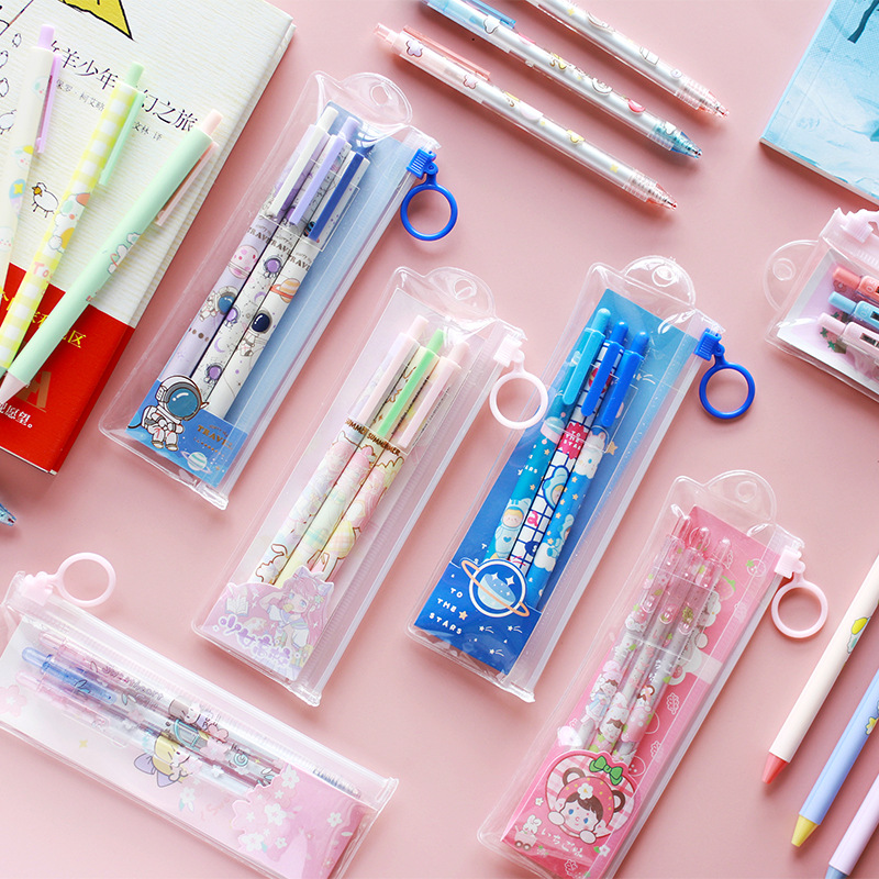 一木林かわいいアニメ袋入り中性筆学生が黒0.5水筆3本のサインペンを書く
