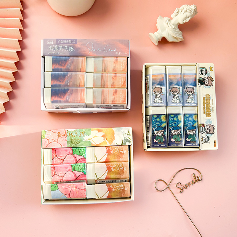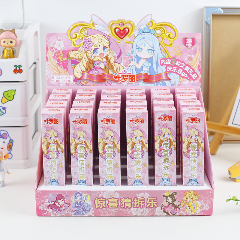 麦と葉羅麗驚きの推測は音楽の3つのセットの創意のかわいい漫画の学生のブラインドの箱のペンのシールの消しゴムの文房具を分解します。