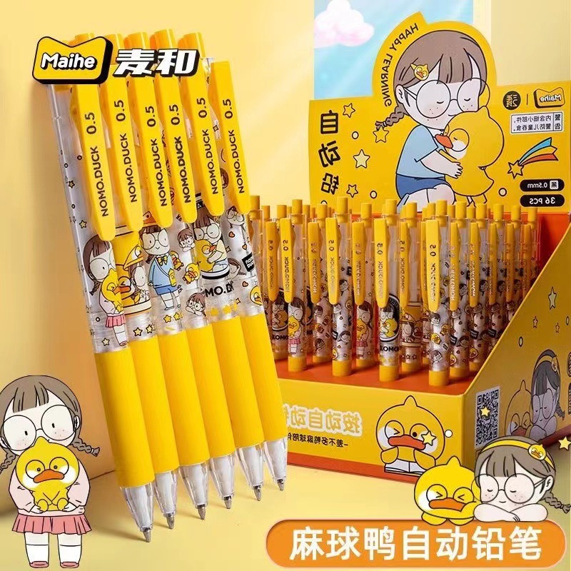 麦とほぼ同じアヒルのシャープペンの小中学生のかわいいアニメ0.5は絶えず芯を書いて活動の鉛を押します。