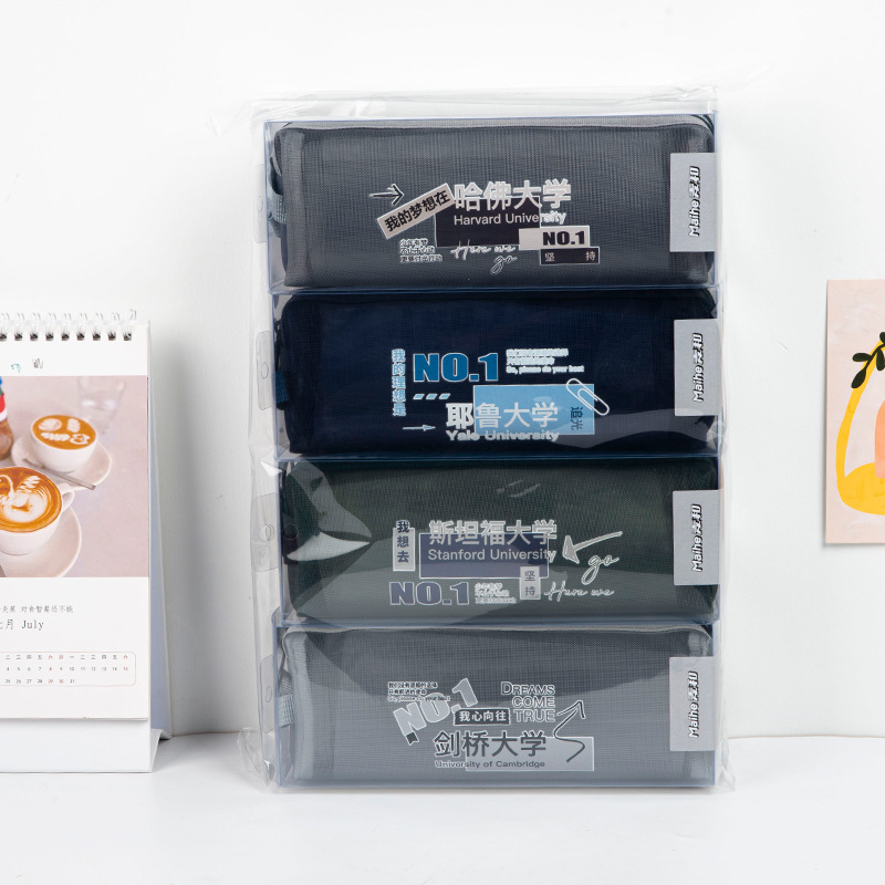 麦と私の心は網糸の四角形の筆袋の大容量の二重の文房具の収納袋の鉛筆の箱の簡単な文房具の袋に憧れます。