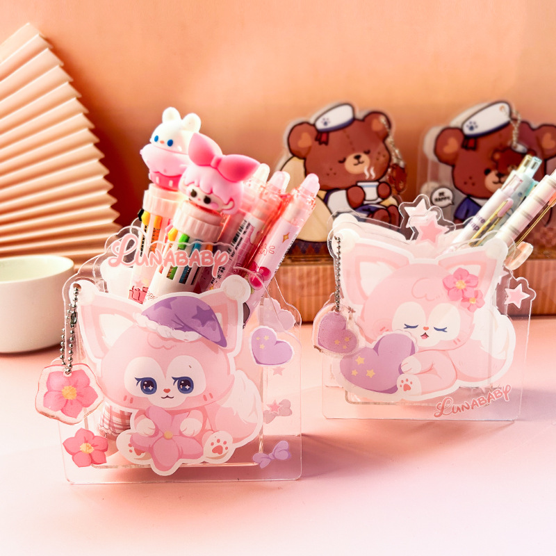 麦とルナ貝比アクリル筆立てキャラクターデスクトップ収納筆記具収納ケース透明筆立て
