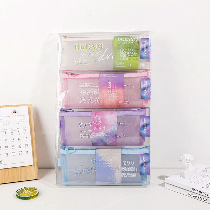 麦和浮生網状ペンケース シンプルでアーティスティックな学生向け文房具収納バッグ 試験用品鉛筆ポーチ