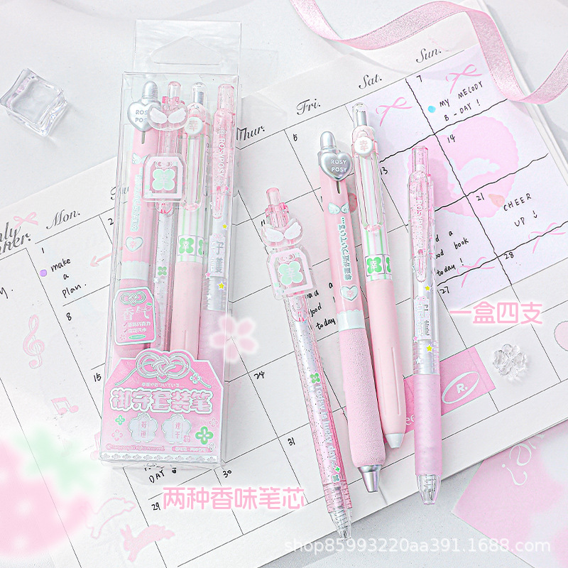 RosyPosy ソフトデザイン ユキシ フレグランスペン 高価値プレスゲルペン 黒ペン 中学生筆ペン