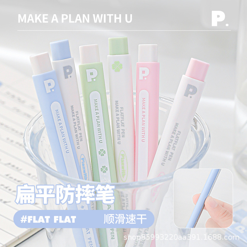 Planwith フラットペン 高価値学生 速乾性 落下防止 プレスゲルペン 試験筆記用 黒サインペン