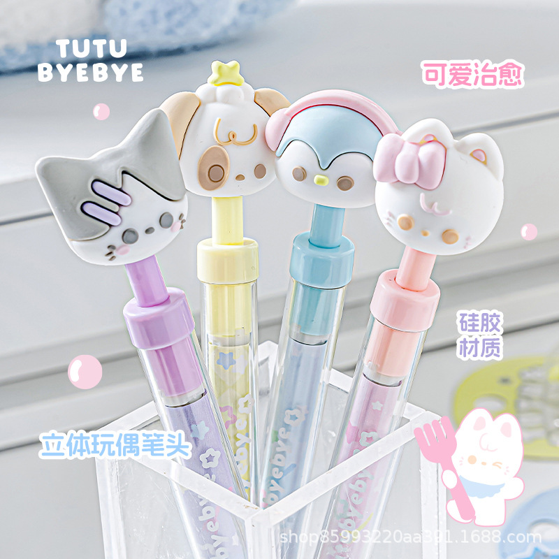 RosyPosy ソフトチュチュ & Byebye スクロールプルペン漫画人形プレスペンゲルペン