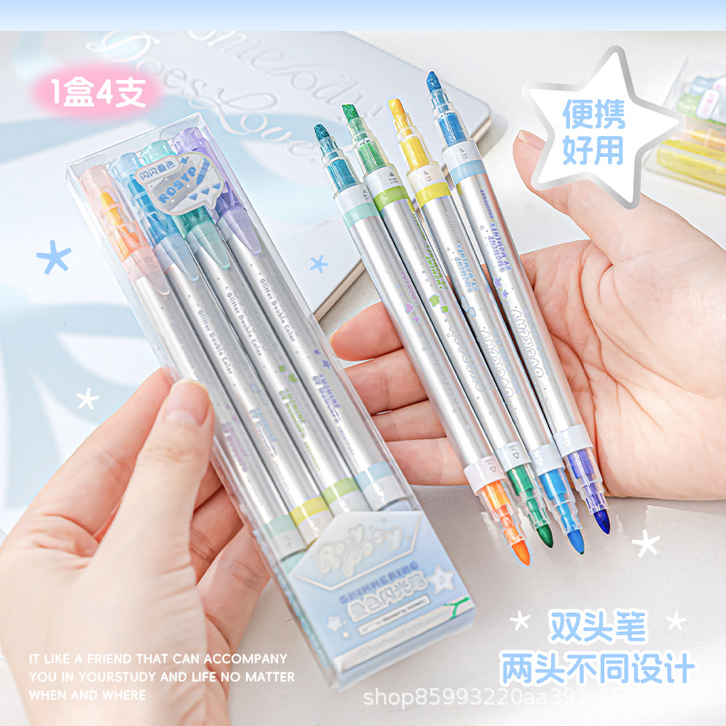 ソフトデザインクリエイティブスタックカラーグリッターペン高価値双頭キャップ蛍光ペン学生キーマーカーセットカラーペン