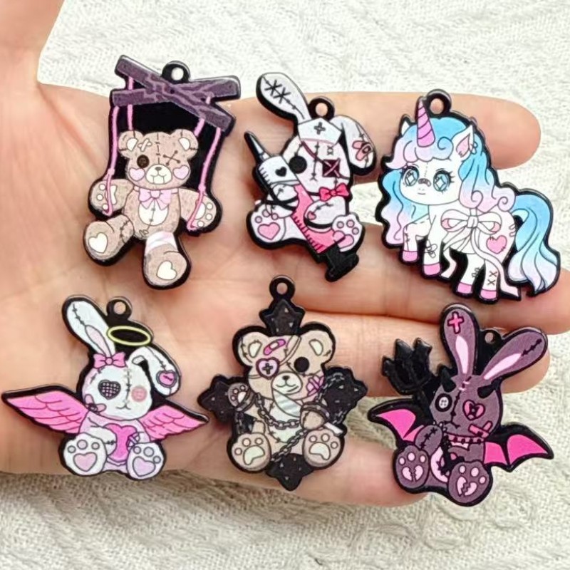 新しいアクリル両面レリーフダークシリーズペンダント DIY キーホルダーイヤリングヘアピンジュエリーアクセサリー材料
