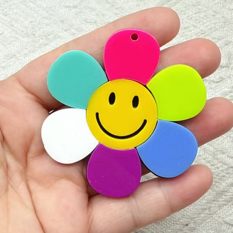 アクリル漫画甘いクールな女の子カラフルなカラーマッチングスマイリーフェイスフラワーヘアアクセサリーキーホルダーペンダント DIY ジュエリーアクセサリー