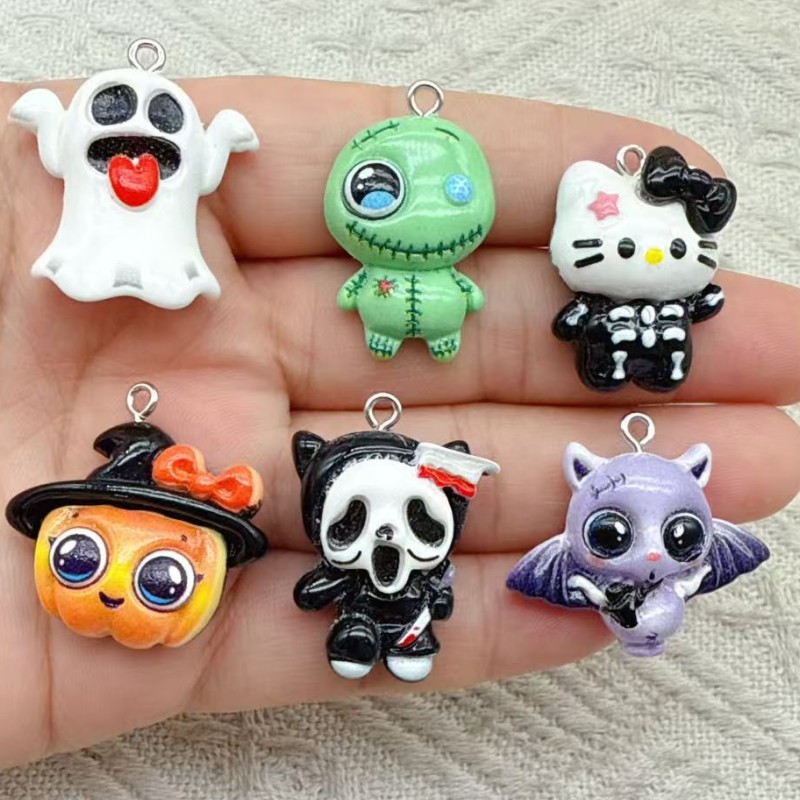 漫画ハロウィンカボチャスカルコウモリゴースト diy ヘアピンヘッドロープ靴花ペンダントジュエリー樹脂アクセサリー