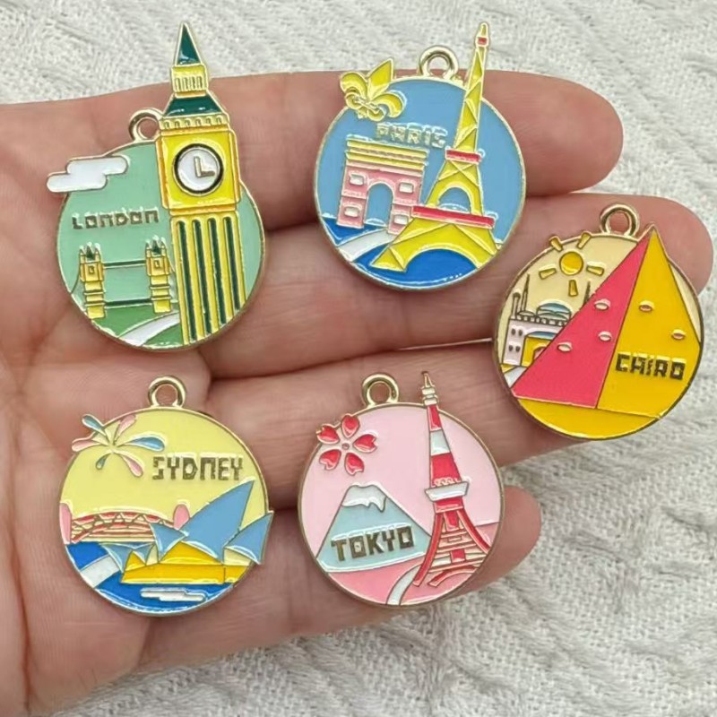 国境を越えた世界の有名な合金アクセサリー DIY パリの塔ピラミッド都市建物キーホルダーペンダントペンダント