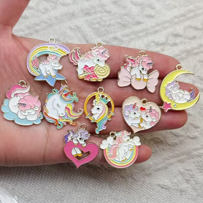 クロスボーダー DIY クリエイティブかわいいユニコーン愛キャンディペンダント合金オイルドリップアクセサリーネックレスキーホルダーペンダント