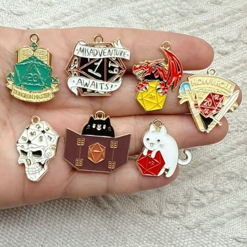 クロスボーダー DIY ダンジョンズ & ドラゴンズ スカル ダイス ペンダント 黒と白の猫合金オイル ドリップ イヤリング ネックレス バッグ アクセサリー