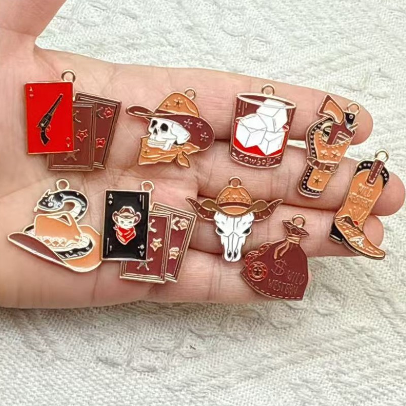 ウエスタンカウボーイハットスカルペンダント DIY 合金ジュエリーアクセサリーネックレスイヤリングキーホルダーペンダントアクセサリー