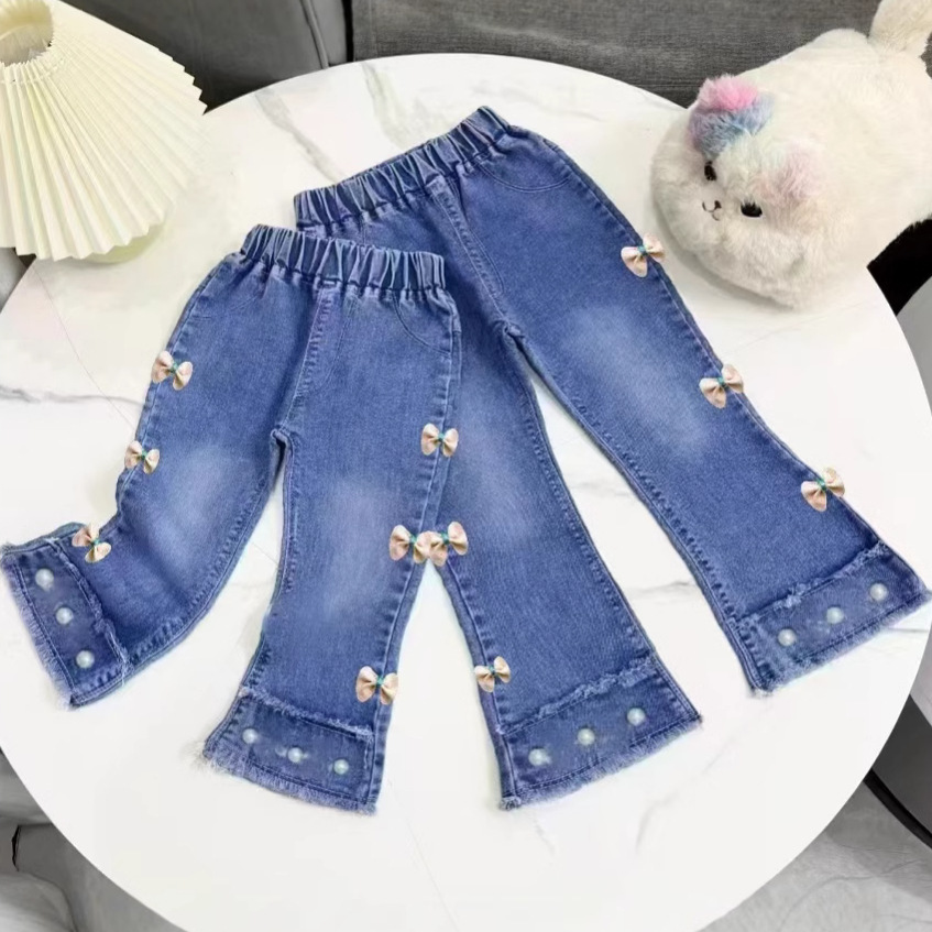 女の子のジーパン2025の新型の春秋の韓国版の洋気の中で子供の女の子のデニムのズボンの外国貿易の卸売りの潮