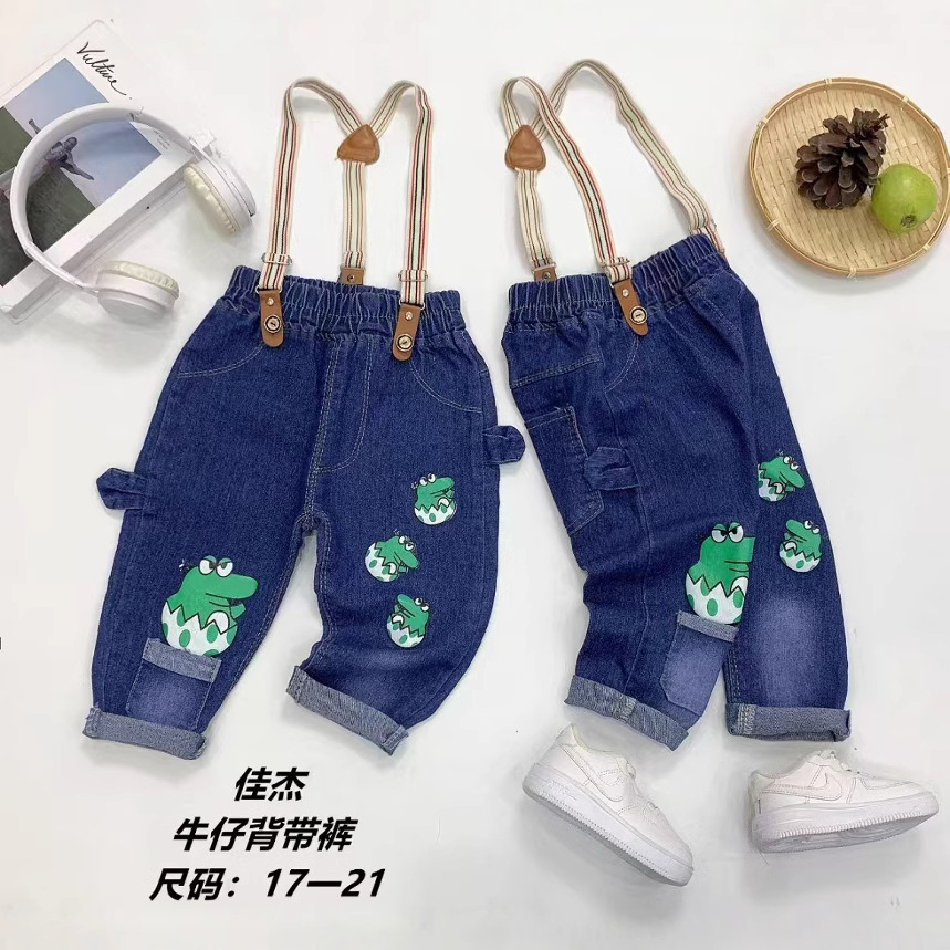 子供の背もたれズボン春と秋の新型男児の洋風ファッションズボンの中で子供の新しい流行の漫画のデニムの背もたれのズボン