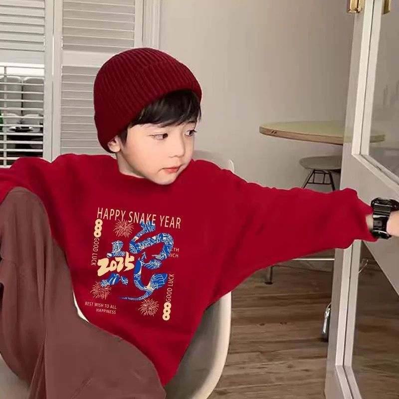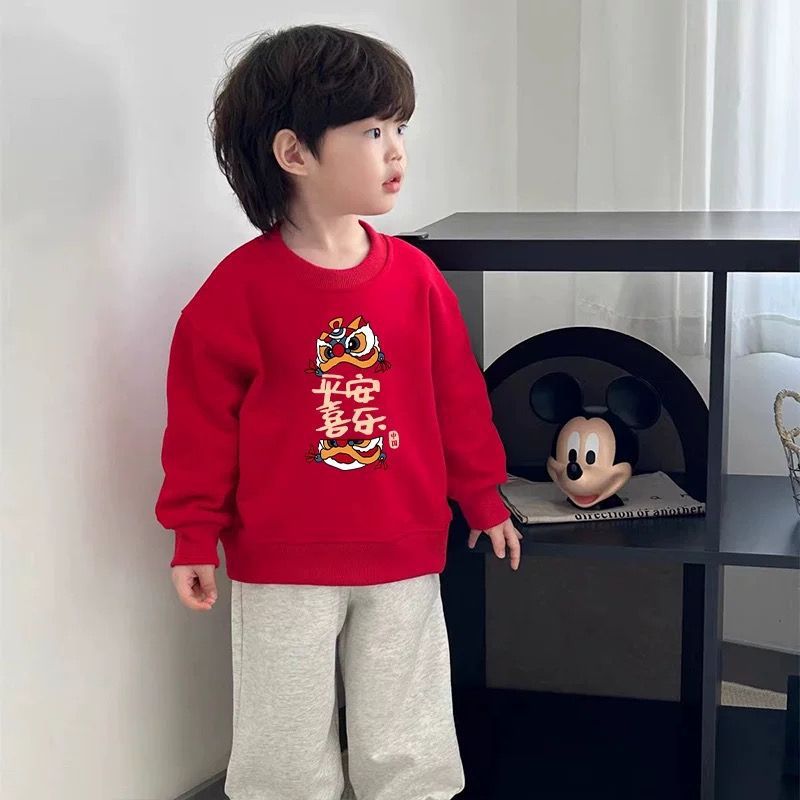 春と秋の新型の赤い服の子供服は年を祝う服を着ます。