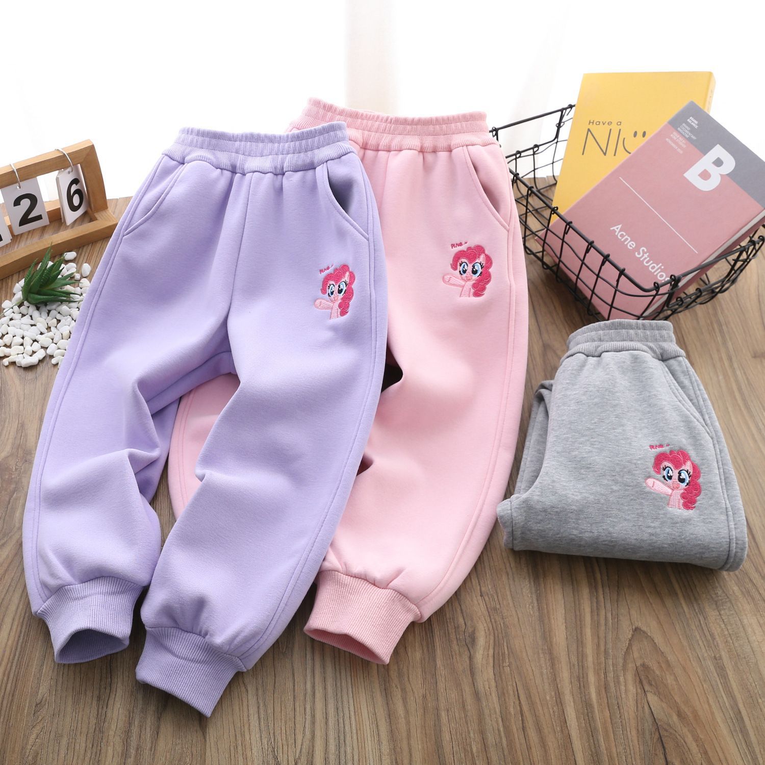 秋冬の女の子のベルベットの衛のズボンの子供服の少女の漫画の馬の宝麗のカジュアルなズボンの韓国版の新型の洋気の保温のズボン