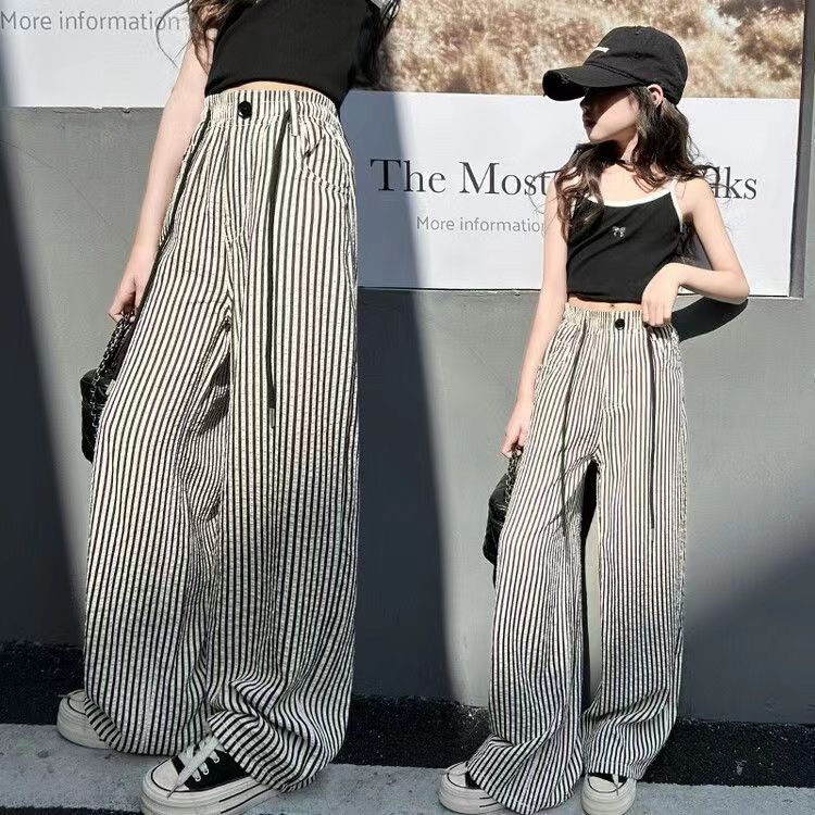 女の子ストレートパンツ2025春夏新潮少女縞カジュアルゆるい薄いタイプの痩せたワイドパンツ対外貿易