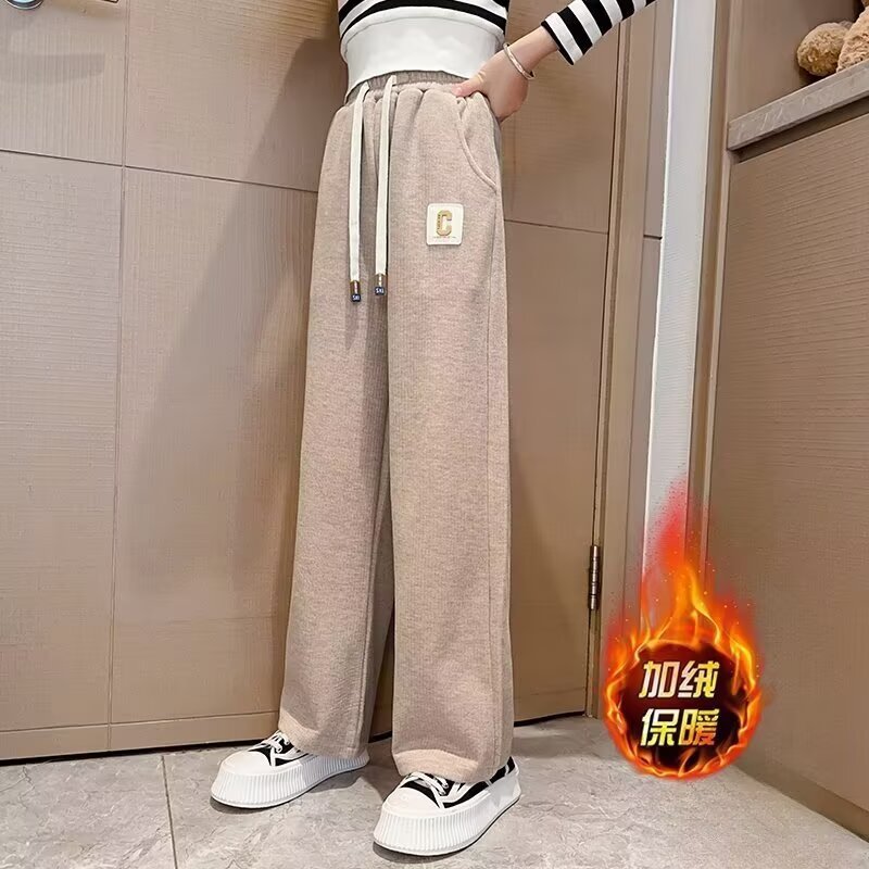 女の子のベルベットのズボン2024秋冬の暖かいズボンの女の子の潮範の爆発的なカジュアルなズボンのスポーツズボンの卸売り