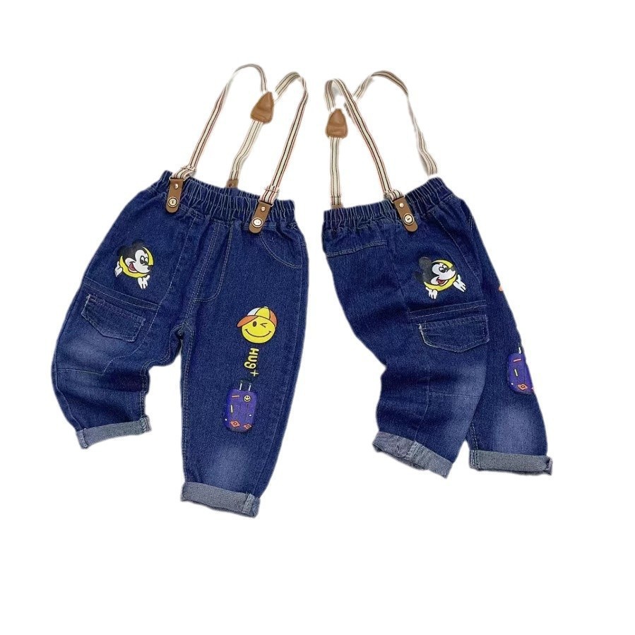 子供用デニムサスペンダーパンツ春秋2025新作男児洋気ファッション長ズボン中小子供カジュアルズボン