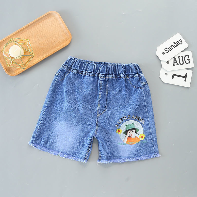工場のデニムのショートパンツの夏の新型の女の子のデニムのショートパンツの赤ちゃんの女の子の外は熱いズボンを着てカジュアルなズボンを合わせます。