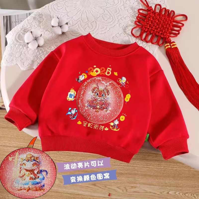 女の子の新年服の赤い服の新年服の子供服の春秋の金は底の丸首の上着を打っておめでとうございます。