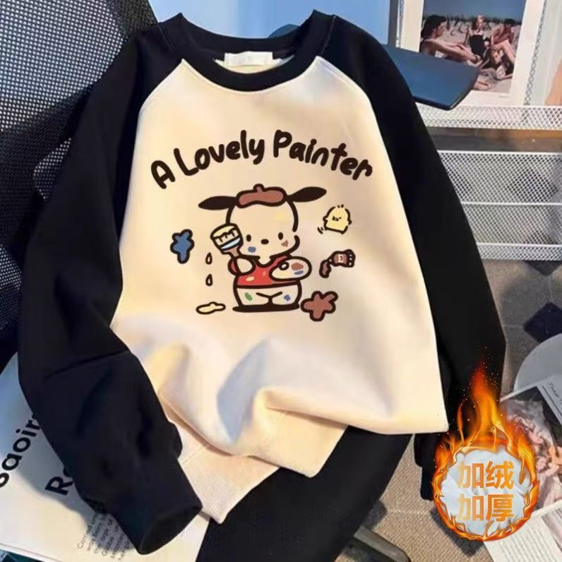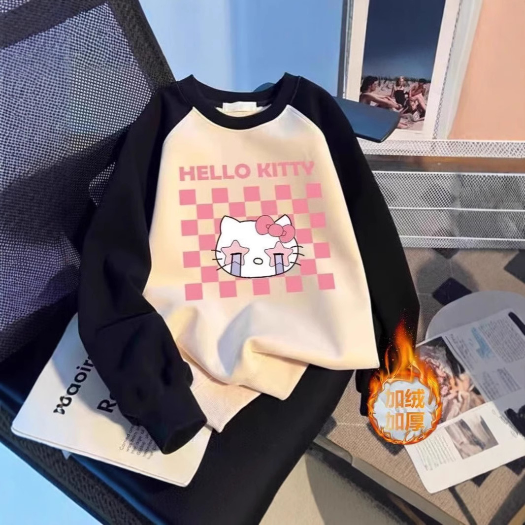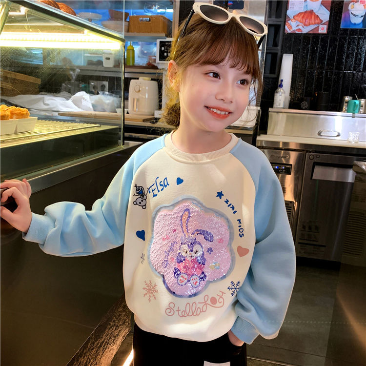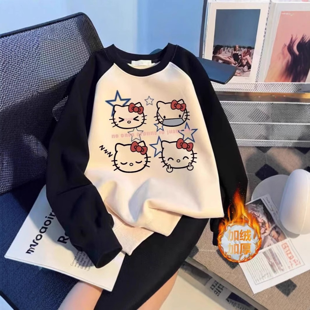 冬のベルベットの女の子のセーター秋冬の子供の漫画のプリントは上着の中の大きい子供の洋気の新しいセーターを厚くします。
