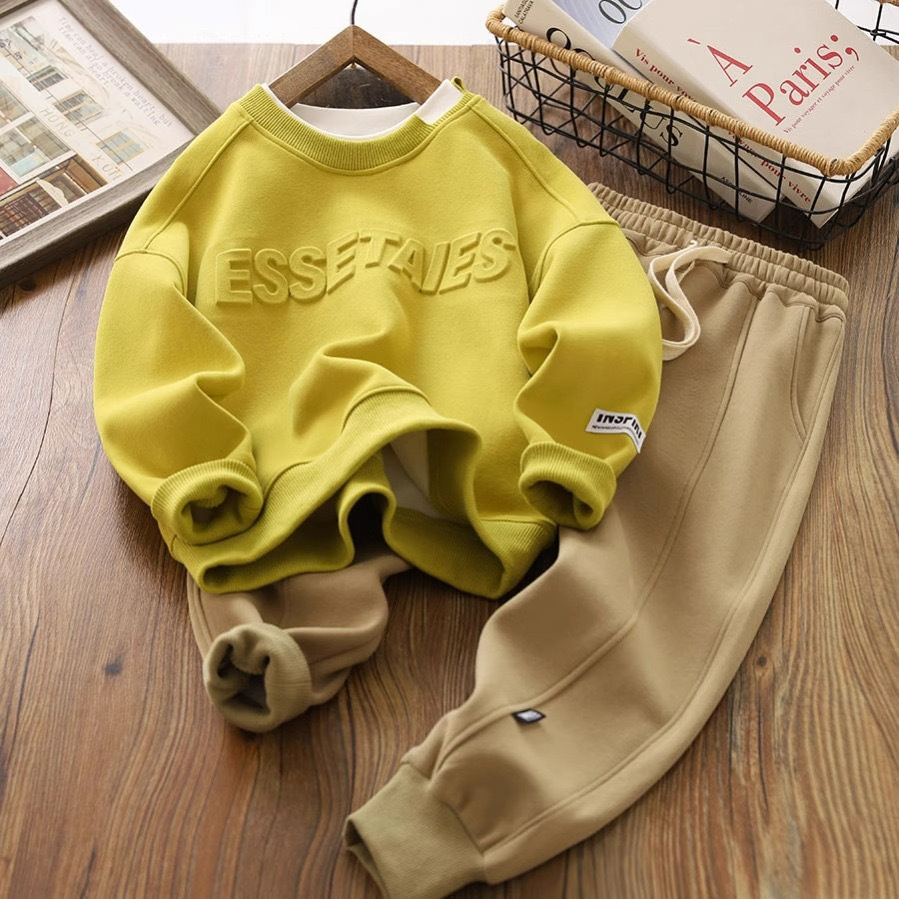 男の子2024の新しい子供のベルベットのパジャマセット冬のベルベットの厚い中の子供の家の服の2つのセット