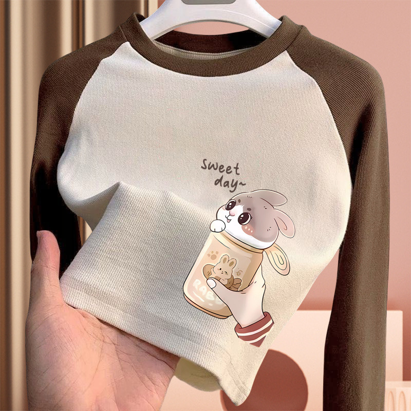 工場卸売り徳絨毛長袖T底シャツ2024春秋新型児童かわいいアニメ保温下着
