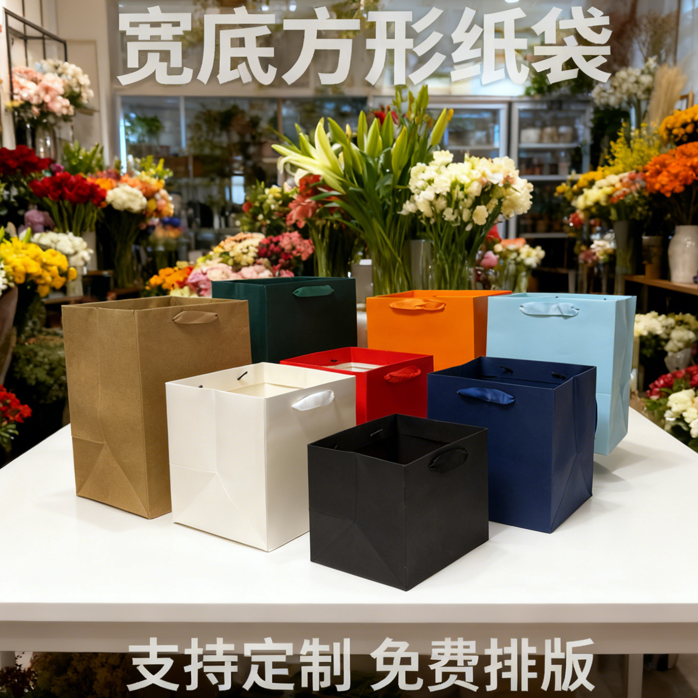 現物卸売りは底の牛皮の紙袋の白い紙の袋のケーキの紙袋の贈り物の袋の正方形の新鮮な花の袋を広げて厚くします。