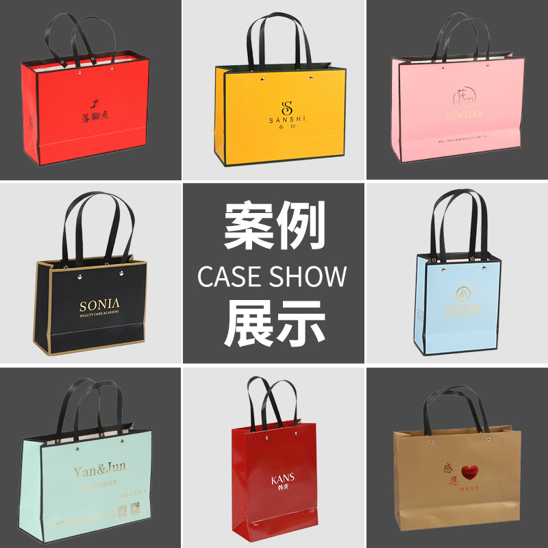 現物厚手ギフトバッグジュエリー化粧品包装袋茶手提げ袋ロゴショッピングバッグ服装紙袋