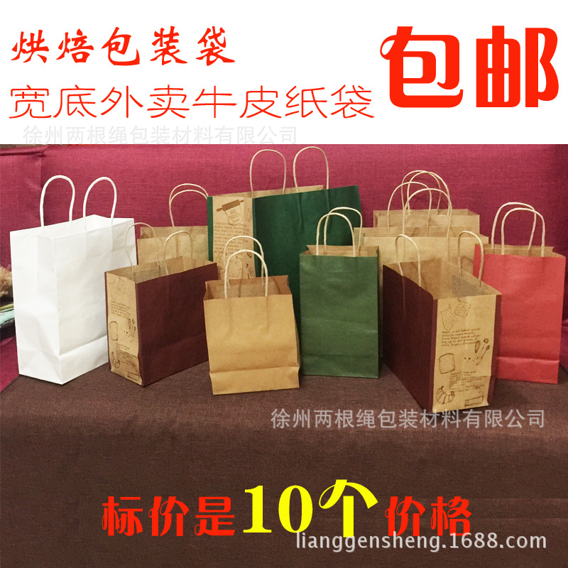スクエアバッグクラフト紙袋原色ワイド底梱包袋パンデザート包装袋テイクアウト紙袋ベーカリー袋