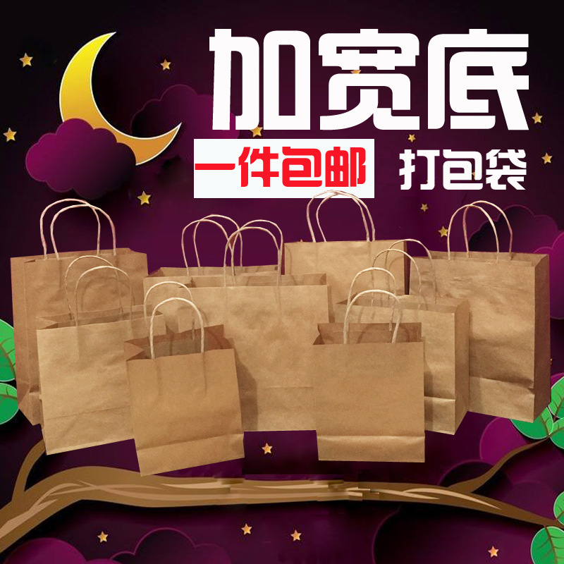 広い底の薄いクラフト紙袋の包装袋の四角形の手提げ袋の円形の飲食弁当箱の袋のテイクアウトの包装袋の弁当箱