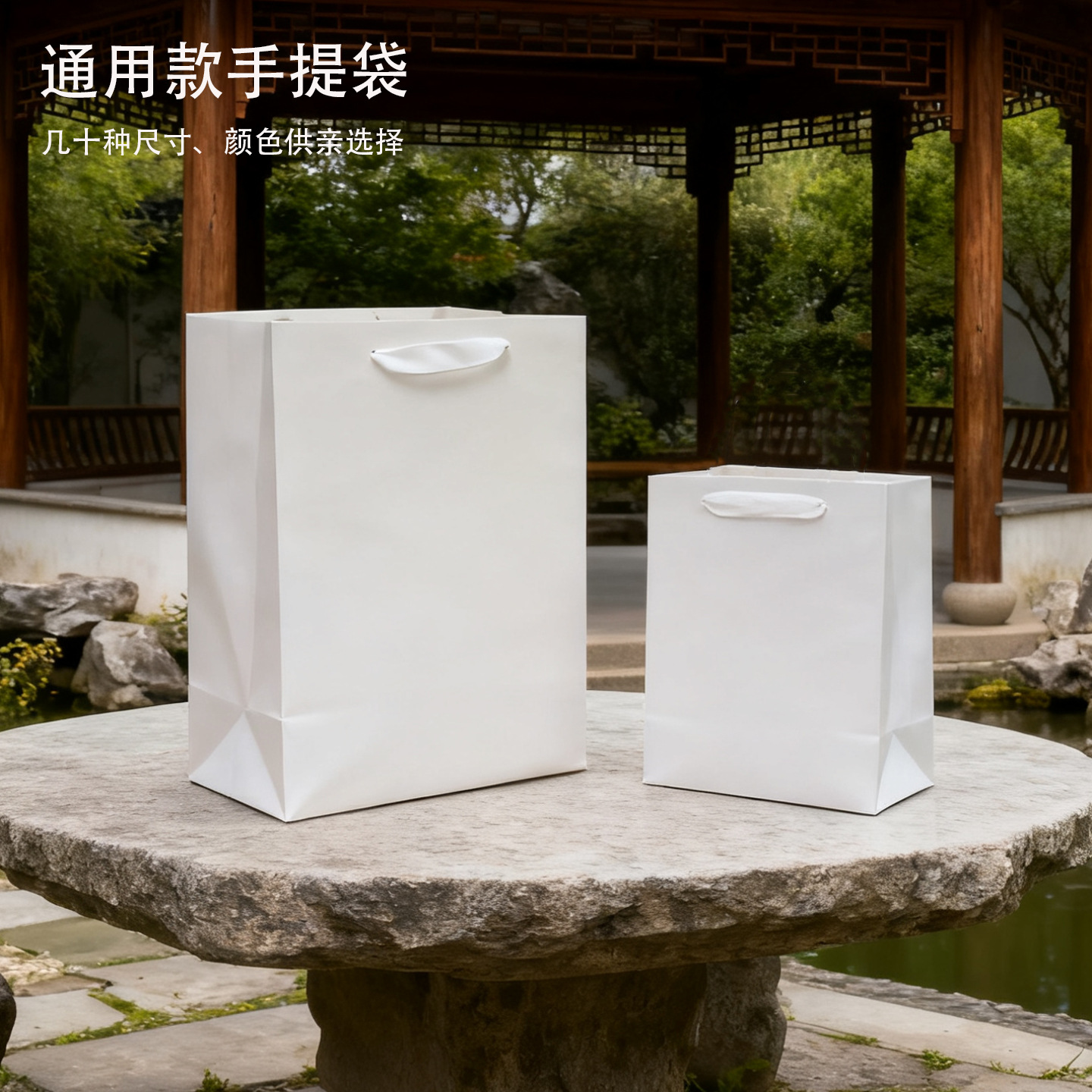 白い手提げ袋純白包装白い紙袋レジ袋デパート服装袋現物店名ロゴ枠