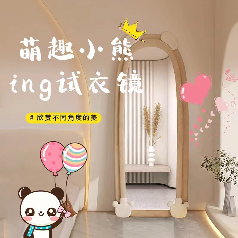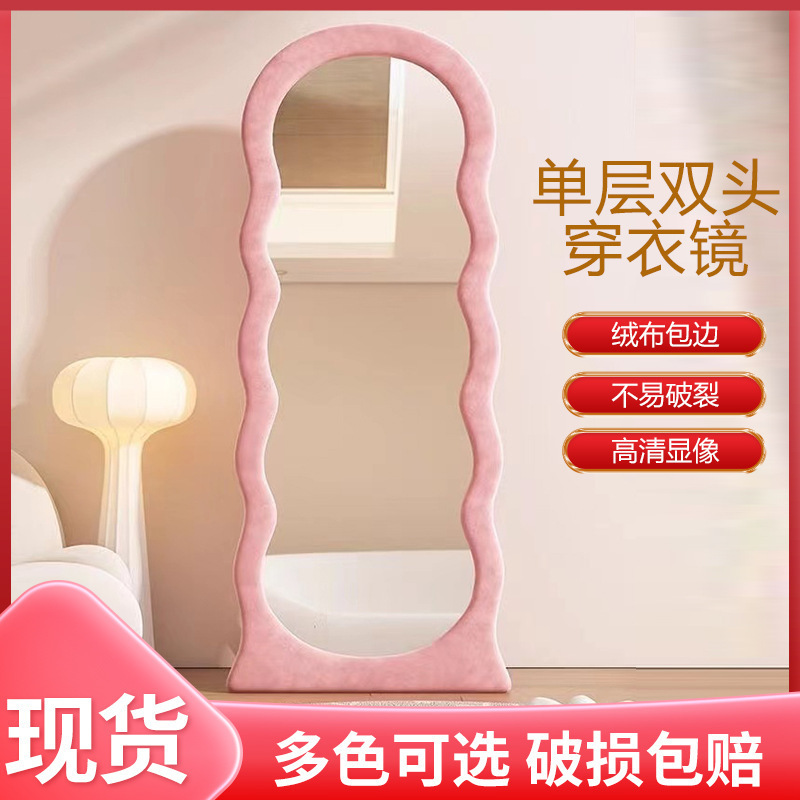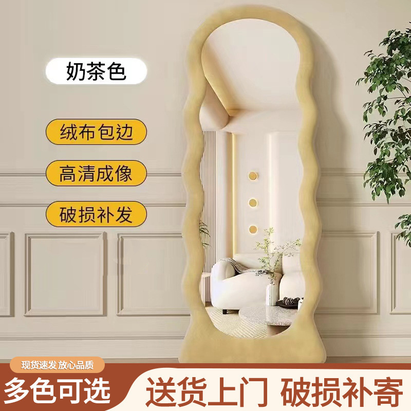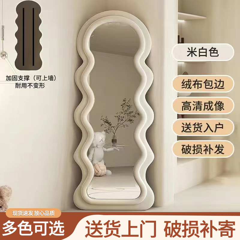スター城クリーム風波床置き鏡寝室化粧鏡不規則アーチ試着鏡家卸売り